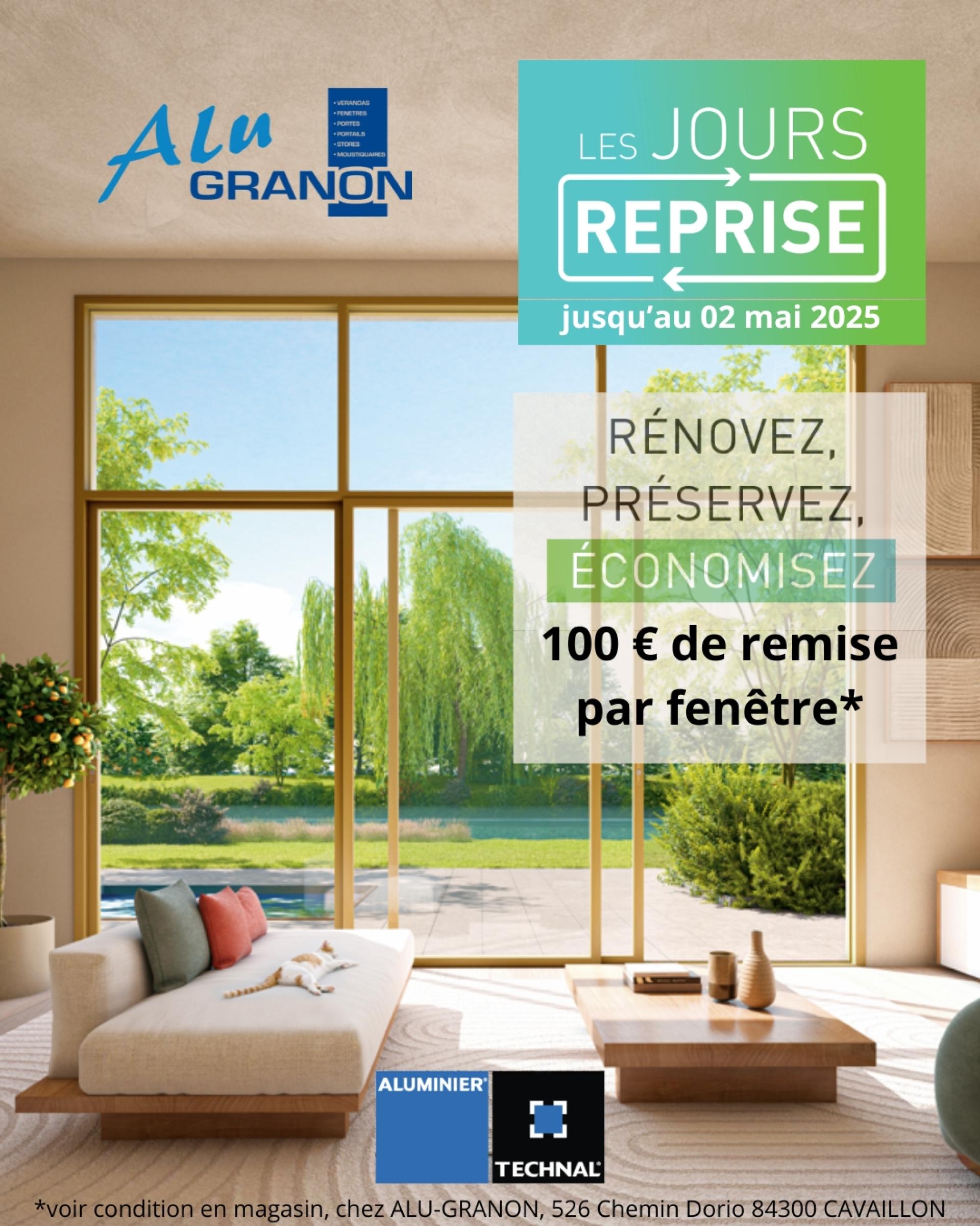 «Jours Reprise» chez ALU GRANON CAVAILLON Du 24 Mars au 2 Mai 2025.